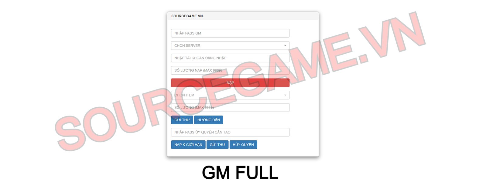 Mô tả: MÃ NGUỒN BAO GỒM SERVER, CLIENT APK, NỀN GM, VĂN BẢN HƯỚNG DẪN CÀI ĐẶT, MÃ NGUỒN CHẠY TRÊN VPS CENTOS