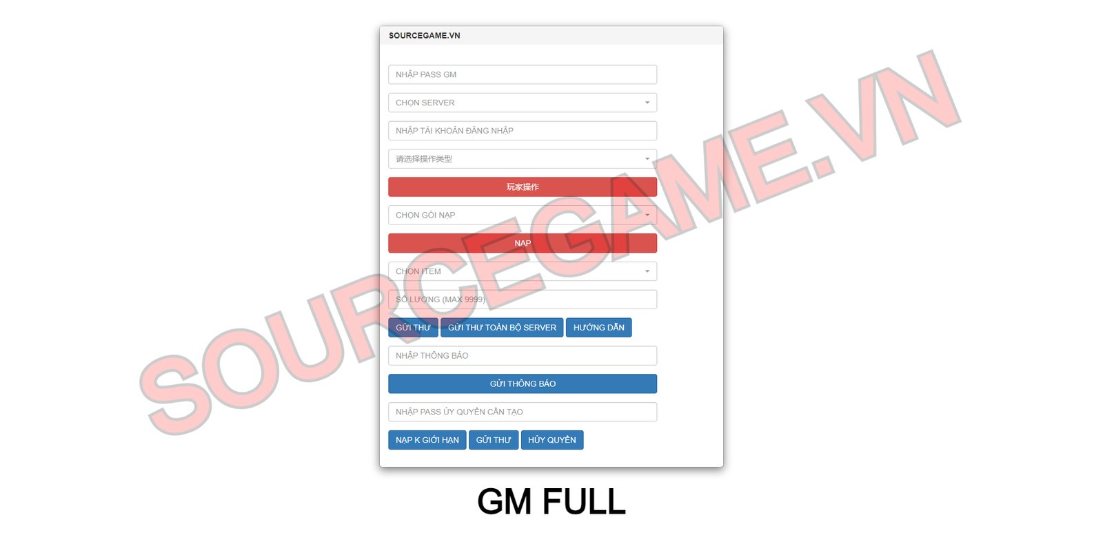 Mô tả: MÃ NGUỒN BAO GỒM SERVER, CLIENT APK IOS, NỀN GM, VĂN BẢN HƯỚNG DẪN CÀI ĐẶT, MÃ NGUỒN CHẠY TRÊN VPS WIN2012R2