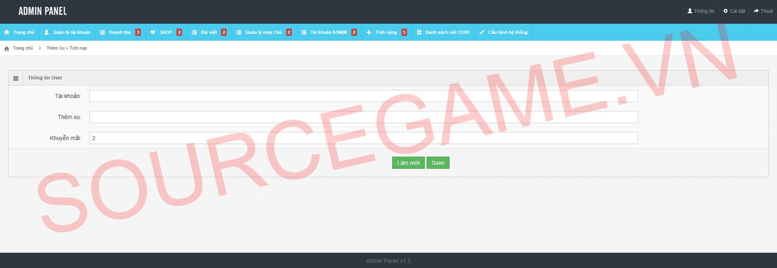 Mô tả: MÃ NGUỒN BAO GỒM SERVER, CLIENT APK IOS, WEB USER, WEB ADMIN, NỀN GM, CÓ LIÊN SERVER, WEB API ĐÃ FIX, VĂN BẢN HƯỚNG DẪN CÀI ĐẶT, VĂN BẢN HƯỚNG DẪN MỞ THÊM SERVER MỚI, MÃ NGUỒN CHẠY TRÊN CENTOS