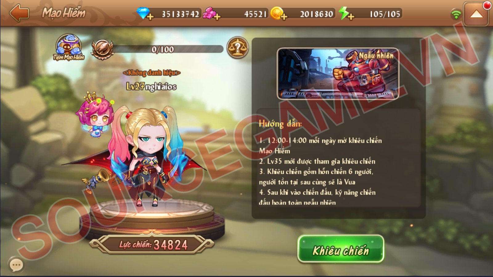 Mô tả: MÃ NGUỒN BAO GỒM SERVER, CLIENT APK IOS, WEB USER NHẬP GIFTOCDE, NỀN GM, VĂN BẢN HƯỚNG DẪN CÀI ĐẶT, VĂN BẢN HƯỚNG DẪN MỞ SERVER MỚI, MÃ NGUỒN CHẠY TRÊN VPS CENTOS