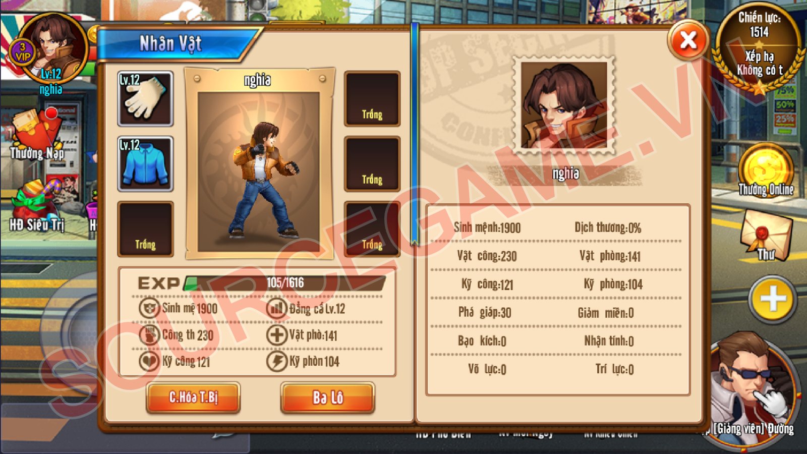 Mô tả: MÃ NGUỒN BAO GỒM SERVER, CLIENT APK VIỆT HÓA 95%, KHÔNG CÓ GM CỘNG TIỀN BẰNG NAVICAT, VĂN BẢN HƯỚNG DẪN CÀI ĐẶT, MÃ NGUỒN CHẠY TRÊN WIN2012R2