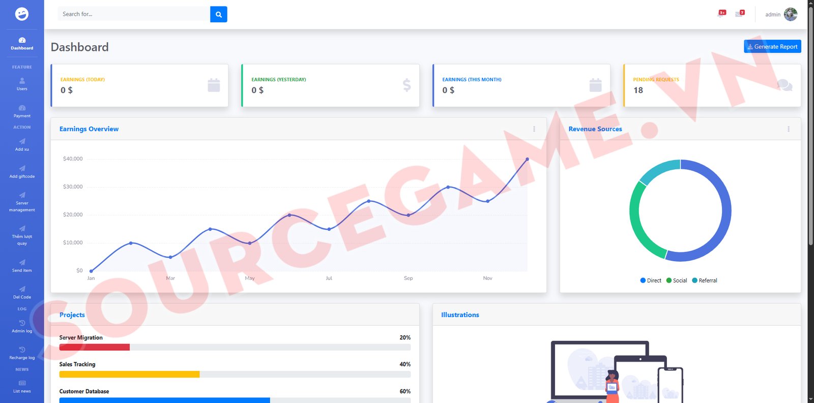 Mô tả: MÃ NGUỒN BAO GỒM SERVER, CLIENT APK IOS, NỀN GM, WEB USER, WEB ADMIN, ERL VÀ TOOL ERL TO BEAM, VĂN BẢN HƯỚNG DẪN CÀI ĐẶT, MÃ NGUỒN CHẠY TRÊN VPS CENTOS